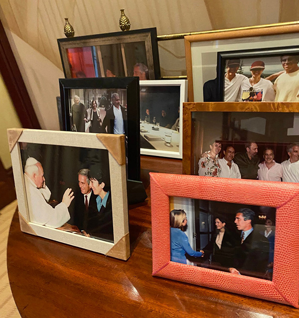 Rezydencja Epsteina pełna była zdjęć, które dokumentowały jego bliskie relacje z najbardziej wpływowymi osobami świata – papieżem Janem Pawłem II, Elonem Muskiem, Mickiem Jaggerem, Donaldem Trumpem, Billem Clintonem, Billem Gatesem czy Richardem Bransonem.